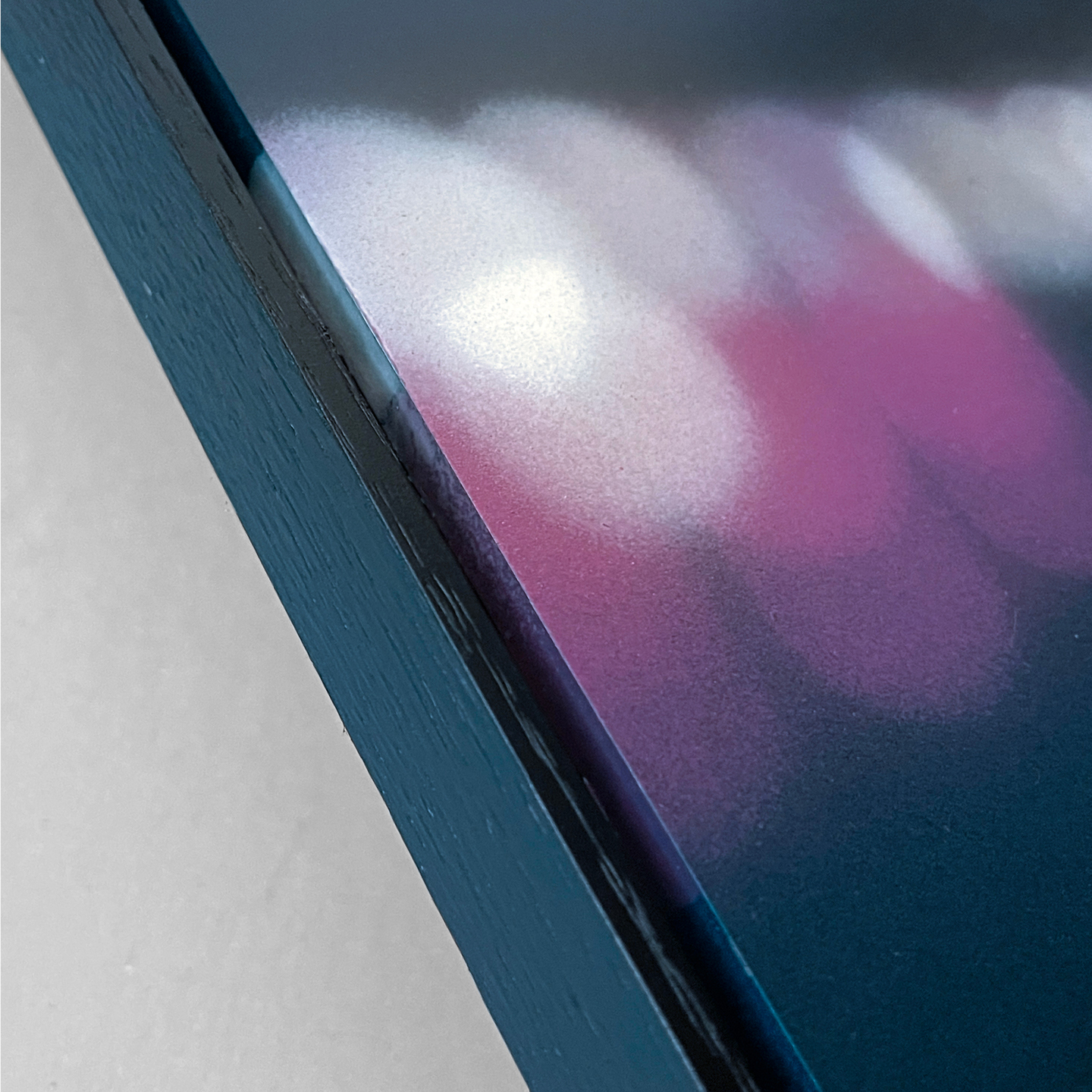 Sprühlack auf Alu-Dibond  500 x 370 mm / Schattenfugenrahmen schwarztürkis-schwarz / © 2025 / verkauft
